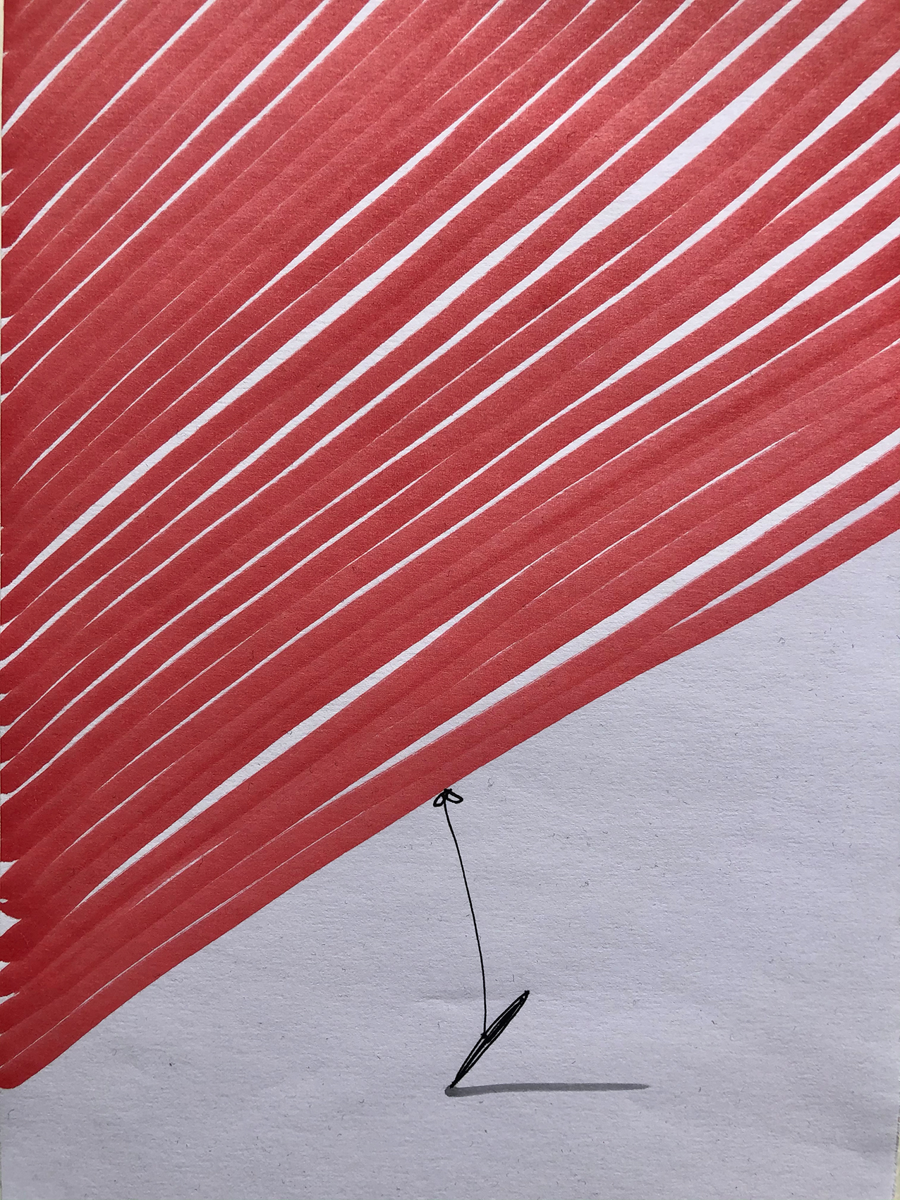 Filzstift auf Schreibmaschinenpapier, circa DIN A5, 2021